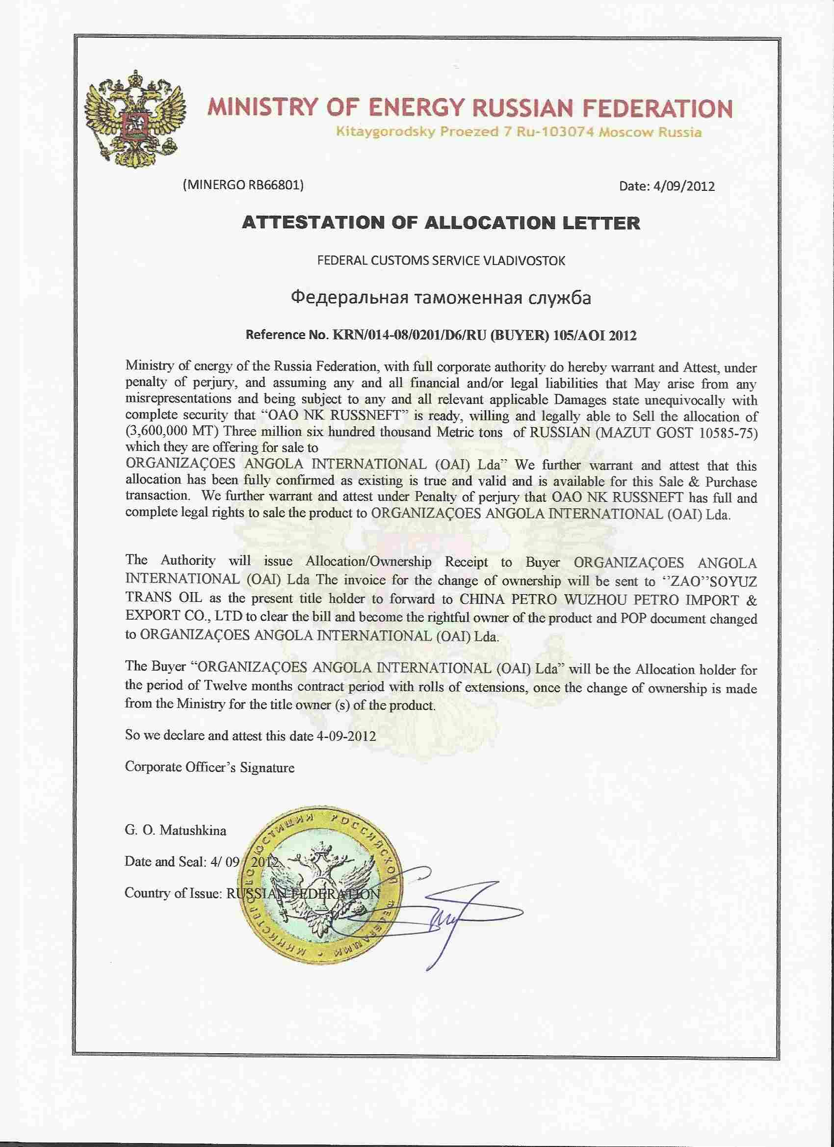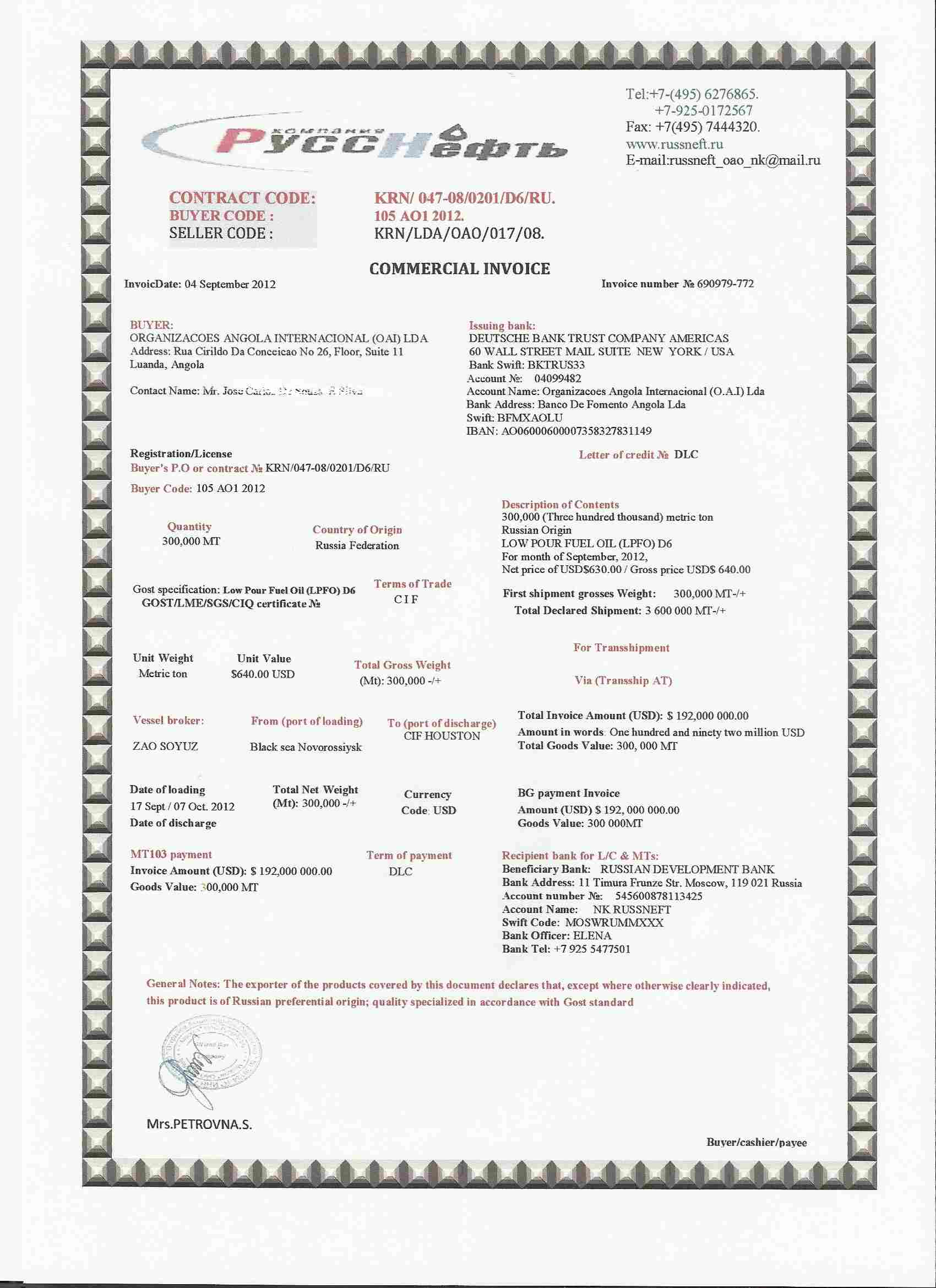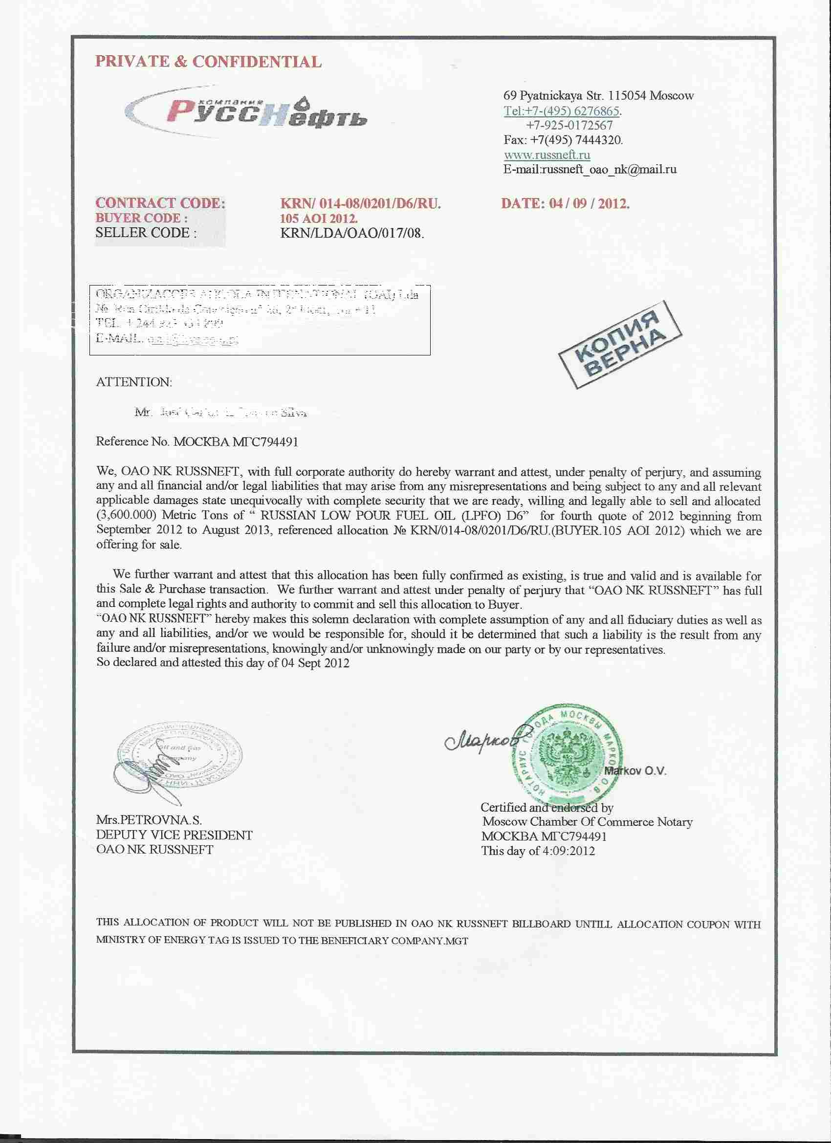 If the buyers express their intention to enter the transaction, they are offered to make prepayment on some assumed pretext. Immediately after the funds are received at their account the pseudo sellers disappear from the buyers’ field of vision. In a number of cases contacts with potential buyers are made on behalf of some people, who pretended to be the Company’s authorized agents for oil and oil products sales.
